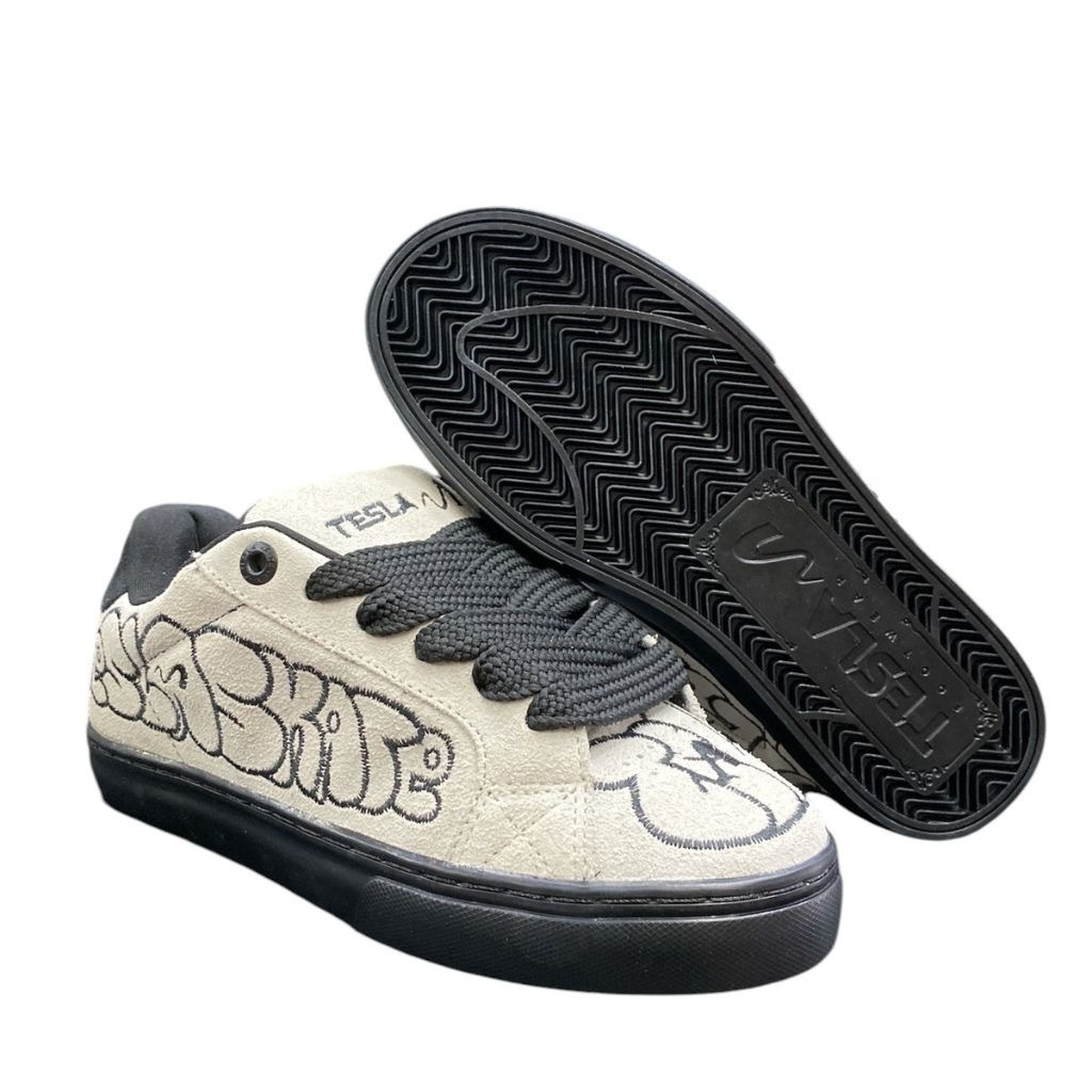 Tênis Tesla Hertz Art Off White Bomb combina estilo, conforto e durabilidade para o skateboard dos dias atuais.