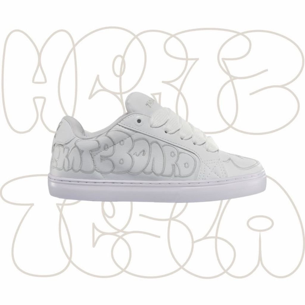 Tênis Tesla Hertz White Art combina estilo, conforto e durabilidade para o skateboard dos dias atuais.