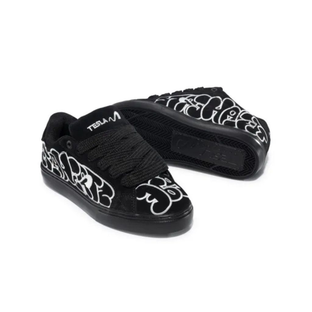 Tênis Tesla Hertz Black Art combina estilo, conforto e durabilidade para o skateboard dos dias atuais.
